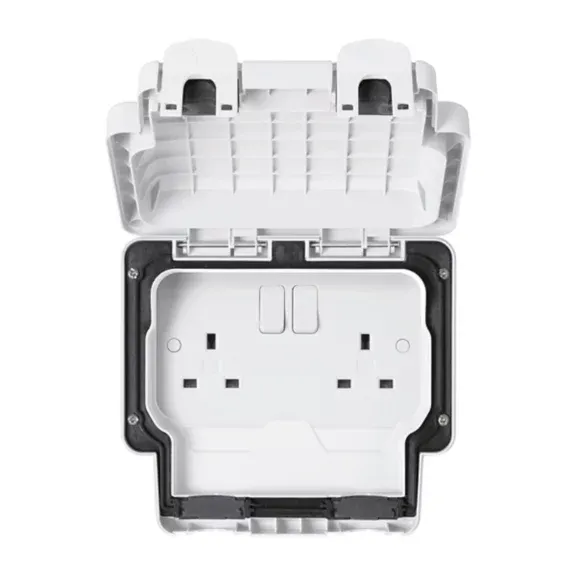 Switched socket outlets are available in both Grey and White finishes and are rated at IP66