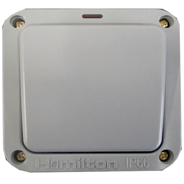 Hamilton - Elemento Grey IP66 1 gang 20AX 2 Way Switch + Neon Grey/Grey